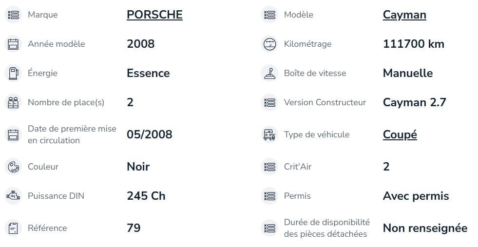 Porsche CAYMAN (987) 2.7 PSE / CARNET COMPLET PORSCHE, (Coupé), NOIR, 0cv, mise en circulation le 20-05-2008.